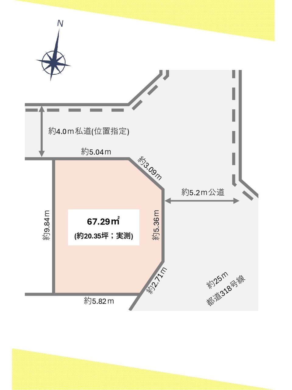 | 接道 | 東側5.2M公道に接道 北側4M私道に接道 |