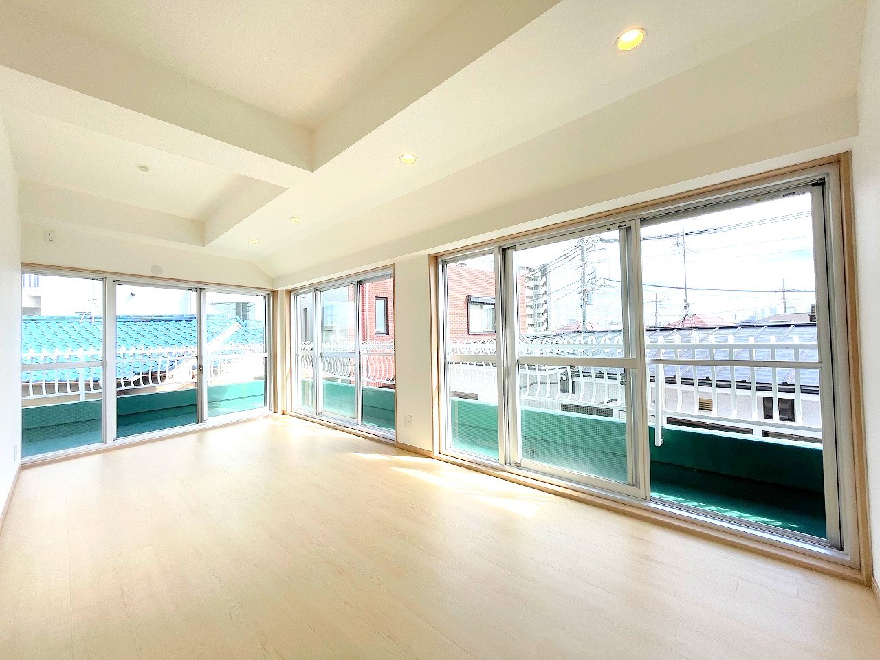 最上階の角住戸、三方向バルコニー
