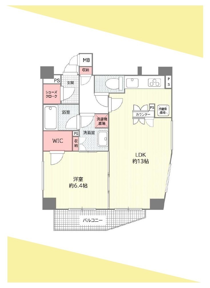| 間取 | 1LDK (LDK13帖、洋室6.4帖) | ||